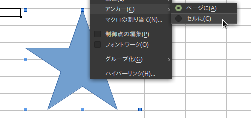 図形をマウス外ボタンクリックして、アンカーをセルにする