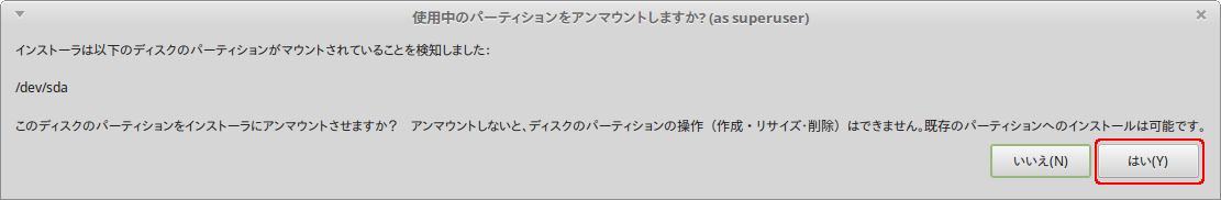 アンマウントしていない場合はアンマウント