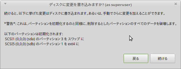 USB ドライブへのインストールで、内蔵ドライブのswapが初期化され