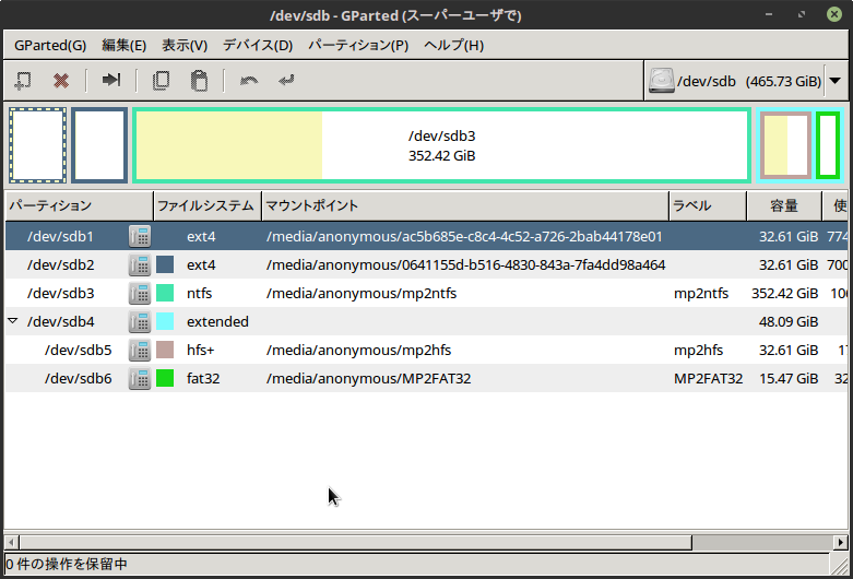 Gpartedでパーティションの情報を見るか