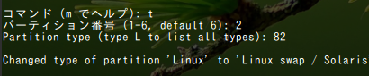 それからfdiskで以下のようにパーティションを作って